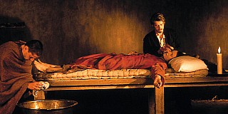 We schrijven 1610. De in armoede vervallen kunstenaar Caravaggio blikt terug op zijn turbelente leven. Het leven van een misdadiger, moordenaar en homoseksueel die ook de grootste schildervorst was van zijn tijd. Hij hield er een driehoeksverhouding op na met twee modellen voor zijn religieuze schilderijen : de straatboef Ranuccio en Rannucio’s maîtresse Lena. De film bestaat uit een opeenvolging, in flashbacks, van strakke, gestileerde tableaux vivants. Jarman herschept op deze wijze de originele schilderijen. Tegelijkertijd onderzoekt hij de homo-subtekst van de werken van caravaggio, speculerend over de relaties van de kunstenaar met zijn favoriete model Ranuccio. Caravaggio was het filmdebuut voor Tilda Swintom en haar eerste samenwerking met Derek Jarman. Vervolgens werkte zij mee aan alle volgende langspeelfilms van Jarman. Verder herkennen we ook de jonge Sean Bean in de rol van Ranuccio.